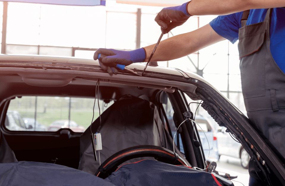 The repair process ensures glass is restored without causing new damage to the vehicle.